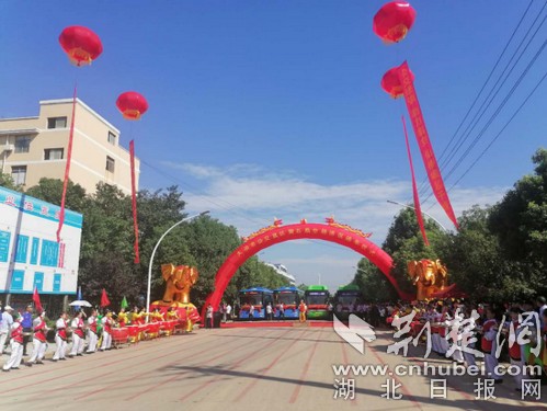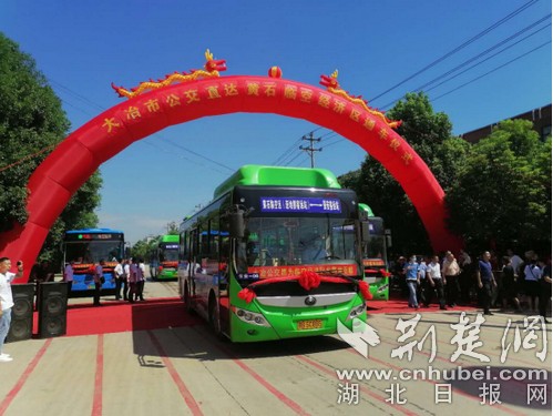 大冶市公交直達(dá)黃石臨空經(jīng)濟(jì)區(qū)通車儀式在還地橋金橋大道舉行。通訊員供圖
