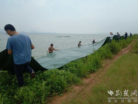 防汛人員搶在暴雨前用條布蓋大堤。(通訊員供圖)