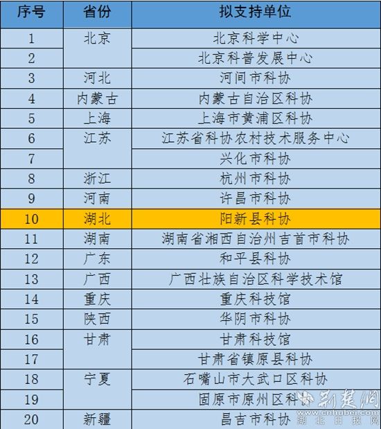 荊楚網(wǎng)客戶端—荊楚網(wǎng)消息(記者阮瓊 通訊員劉春藝)8月19日,記者獲悉,2020年“智惠行動”項(xiàng)目申報(bào)評審結(jié)果已經(jīng)公布,陽新縣科學(xué)技術(shù)協(xié)會(以下簡稱:陽新縣科協(xié))成功躋身“智惠行動”——整合資源創(chuàng)新推進(jìn)科技志愿服務(wù)子項(xiàng)目,陽新縣科協(xié)也是湖北省唯一成功申報(bào)該項(xiàng)目的縣級科協(xié)。
