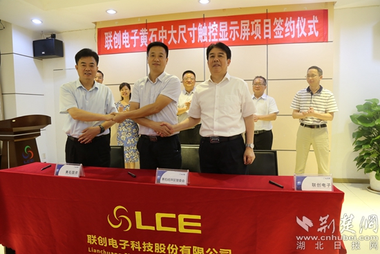 荊楚網(wǎng)客戶端—荊楚網(wǎng)消息(通訊員 羅琴)8月21日下午,在各方的共同見(jiàn)證下,黃石市國(guó)資公司黨委書(shū)記、董事長(zhǎng)潘憲章與江西聯(lián)創(chuàng)電子有限公司董事長(zhǎng)韓盛龍分別代表雙方簽約,標(biāo)志著總投資20億元的聯(lián)創(chuàng)電子黃石中大尺寸觸控顯示屏項(xiàng)目正式落戶黃石。