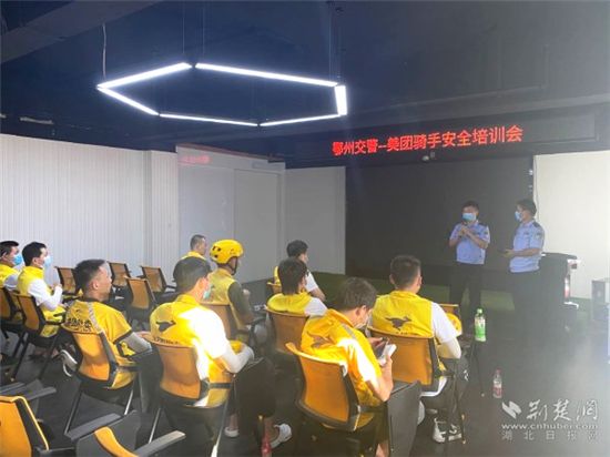 交警向外賣騎手開展安全教育培訓(xùn)。通訊員供圖