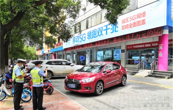 “我們組建機動車違法停車專項整治專班,下設(shè)10個違停抓拍小組,在我市27條主次干道范圍內(nèi)采取流動巡邏和定點值守的措施,積極開展專項整治,分片管理,嚴(yán)查機動車亂停亂放?!闭螌0嗝窬榻B,7月21日當(dāng)天,違停整治專班共抓拍機動車違停764起。