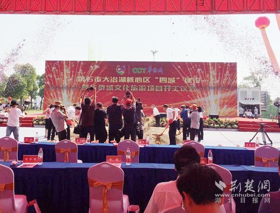 9月7日上午,黃石華僑城文旅項(xiàng)目在大冶湖畔開工。(記者 呂鑒蕾 攝)