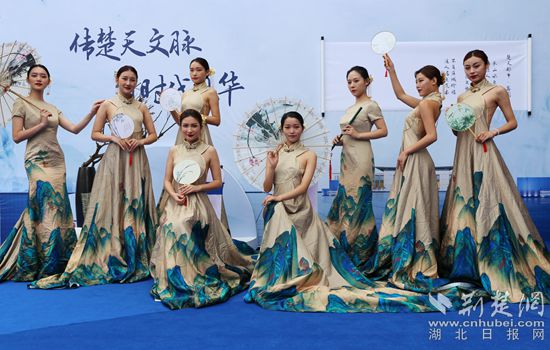 模特身著山水畫禮服,典雅有致。(記者 胡小軍 攝)