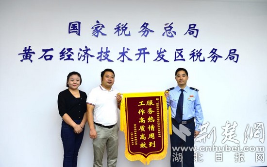 9月17日,黃石迅邦置業(yè)有限公司給黃石經(jīng)濟技術(shù)開發(fā)區(qū)稅務(wù)局干部柯希鵬送錦旗。通訊員供圖