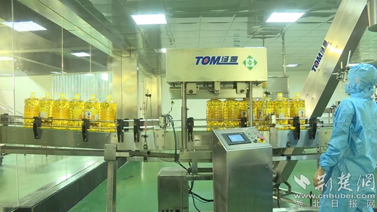 荊楚網(wǎng)客戶端—荊楚網(wǎng)消息(通訊員 劉少川 陸登鋒)9月23日,武穴市??涤椭邢薰緮?shù)控自動(dòng)化灌裝生產(chǎn)線一片忙碌,一桶桶加工好的菜籽油整齊排列在傳送帶上依次等候自動(dòng)打包、碼放。兩名佩戴口罩、身著防護(hù)服的員工在仔細(xì)檢查機(jī)器運(yùn)轉(zhuǎn)情況。