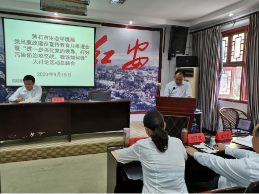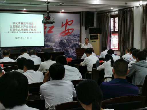 黃石市生態(tài)環(huán)境局黨組書記張紅珍以《強化清廉實干擔當 全面落實從嚴治黨要求 打造生態(tài)環(huán)境保護鐵軍》為主題為參會人員講授廉政黨課。
