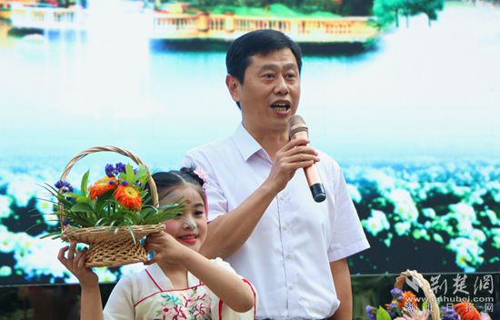 麻城市市長蔡緒安推介菊花新產(chǎn)品。記者胡小軍攝