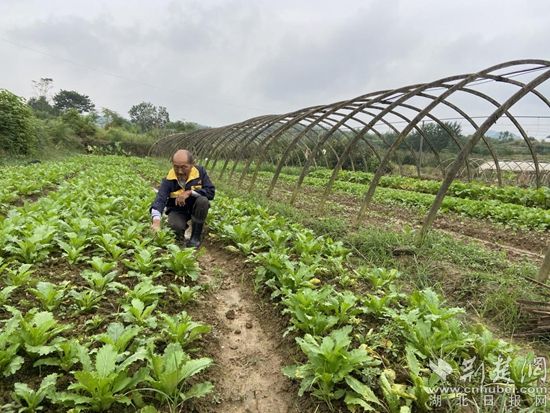 貧困戶陳林中在菜地查看種植情況。(通訊員供圖)