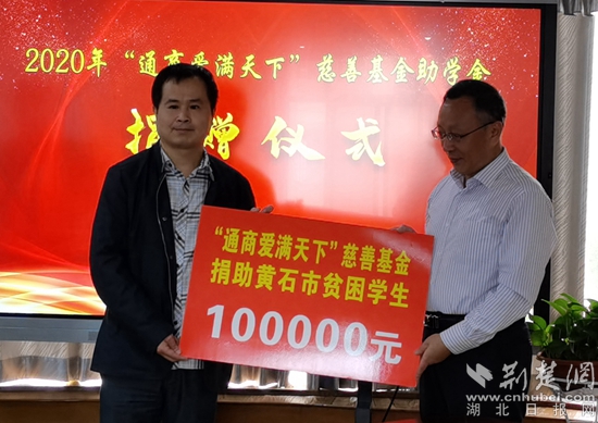“通商愛滿天下”慈善基金捐贈黃石市貧困學生100000元。阮瓊攝