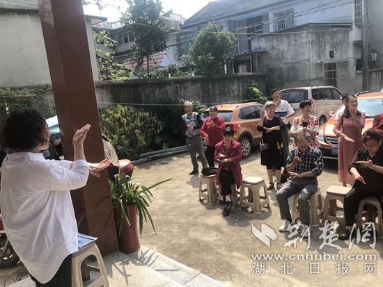 黃石港區(qū)計生協(xié)志愿者與暖心家園的家人們一起做手部健康操。(通訊員供圖)