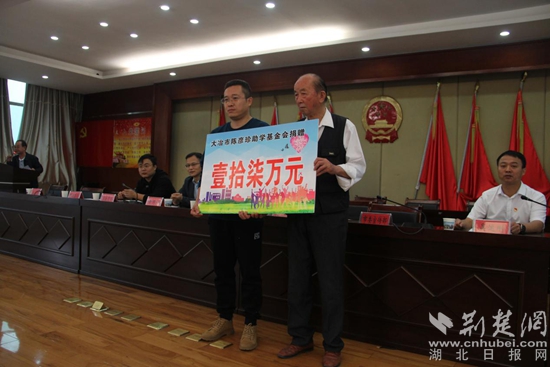 這位集大冶楷模、黃石楷模、荊楚楷模等榮譽于一身的老人,從教育崗位退休后,為了實現(xiàn)自己的慈善事業(yè)夢想,投資創(chuàng)辦加油站,成立“大冶市陳彥珍助學(xué)基金會”,用創(chuàng)業(yè)賺來的錢資助數(shù)百名貧困學(xué)子求學(xué)之路,并在家鄉(xiāng)建起慈善大樓,資助家鄉(xiāng)的公益事業(yè)建設(shè)。