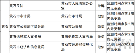 具體為,黃石市人民防空辦公室、黃石市審計局、黃石市公安局、黃石市退役軍人事務(wù)局和黃石市經(jīng)濟和信息化局等5家單位政務(wù)新媒體,在抽查中發(fā)現(xiàn)“監(jiān)測時間點前2周內(nèi)無更新”。同時,上述5家單位,除黃石市人民防空辦公室外,其他4家政務(wù)新媒體還發(fā)現(xiàn)存在“未備案”問題。