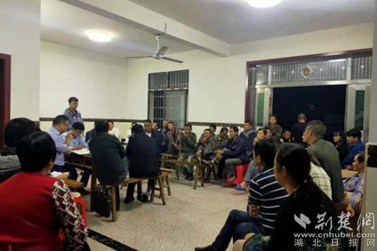 錢爐村組織“垸子夜話”學(xué)習(xí)《習(xí)近平談治國理政》第三卷。 通訊員 供圖