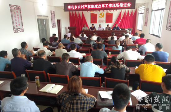 10月13日,杏花鄉(xiāng)召開農(nóng)村產(chǎn)權(quán)制度改革工作現(xiàn)場推進(jìn)會。通訊員供圖