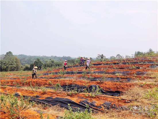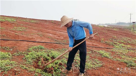 正在鋤地準(zhǔn)備施肥的村民。(記者熊子璇 攝)