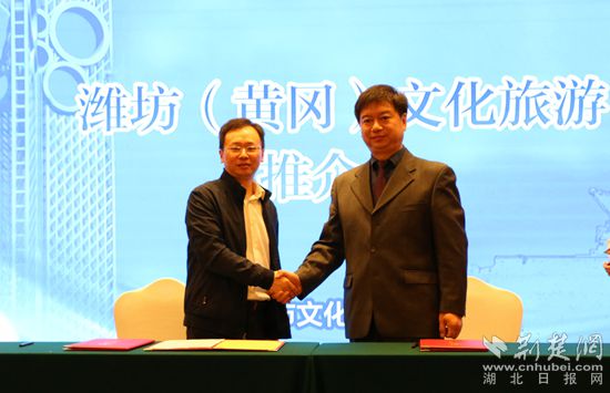 荊楚網(wǎng)客戶端—荊楚網(wǎng)消息(記者胡小軍 通訊員王勇超)10月20日,黃岡市舉辦濰坊文化旅游推介會(huì),推出線路產(chǎn)品和優(yōu)惠政策,簽署合作協(xié)議。這是繼今年8月兩地締結(jié)友好城市后,濰坊與黃岡兩地就文化旅游產(chǎn)業(yè)協(xié)同發(fā)展進(jìn)一步合作發(fā)力。