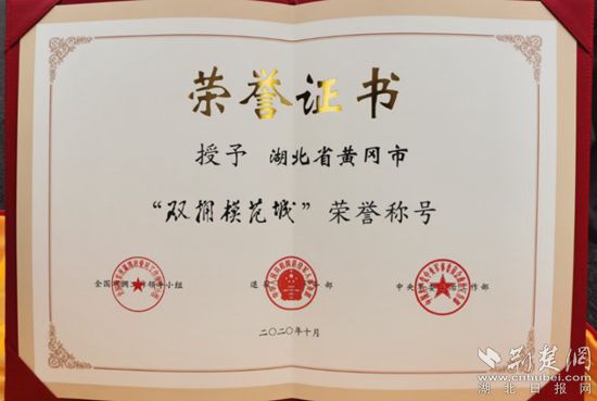 荊楚網(wǎng)客戶端—荊楚網(wǎng)消息(通訊員楊陽 郭峰)10月20日,筆者獲悉,在全國雙擁模范城(縣)命名暨雙擁模范單位和個人表彰大會上,黃岡市連續(xù)四次被命名為“全國雙擁模范城”,紅安縣連續(xù)六次被命名為“全國雙擁模范縣”,羅田縣九資河鎮(zhèn)太陽寨村村民王開明被表彰為“全國愛國擁軍模范”。