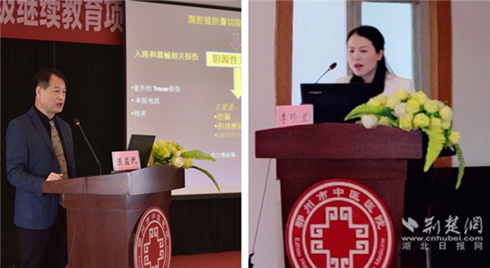 其中,鄂州市中醫(yī)醫(yī)院普外科主任陳益民、普外科護(hù)士長李珍蘭先后對《腹腔鏡膽囊切除術(shù)后并發(fā)癥的外科處理》和《腹腔鏡膽囊切除術(shù)圍手術(shù)期的護(hù)理》等方面與大家進(jìn)行了經(jīng)驗(yàn)分享和交流。