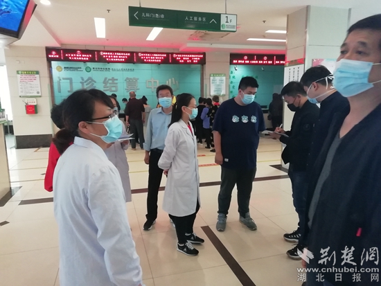 檢查人員在門(mén)診大廳巡視。(通訊員供圖)