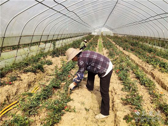“合作社一直本著優(yōu)先招用貧困戶以及無固定工作的留守婦女,每年用工11000余人次?!苯鸹秩A介紹道。據(jù)統(tǒng)計,截至目前,金恢華的花卉基地共為貧困戶發(fā)放工資百萬余元,帶動二十戶建檔立卡貧困戶摘掉窮帽子。