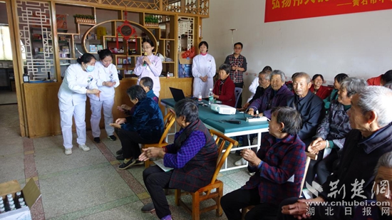義診現(xiàn)場,專家們?yōu)榇迕襁M行量血壓、血常規(guī)、視力等檢查,對常見病、慢性病進行初步篩查、診斷和治療,并結(jié)合病情為其制定合理的健康指導(dǎo)方案,鼓勵村民養(yǎng)成健康的生活方式。這次義診活動,鄂東醫(yī)療集團市中心醫(yī)院消化內(nèi)科的醫(yī)護人員們,還給不少村民帶來了“驚喜”:他們在給村民做完P(guān)PT演示、講授常見消化道疾病知識后,還結(jié)合當(dāng)前新冠疫情防控,演示正確配戴口罩、洗手的方式和方法。