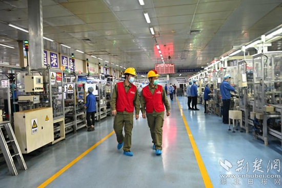 供電員工在東貝集團生產(chǎn)車間了解用電需求情況。通訊員供圖