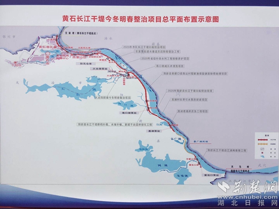 黃石長江干堤今冬明春整治項(xiàng)目總平面布置示意圖。(記者 呂鑒蕾 攝)