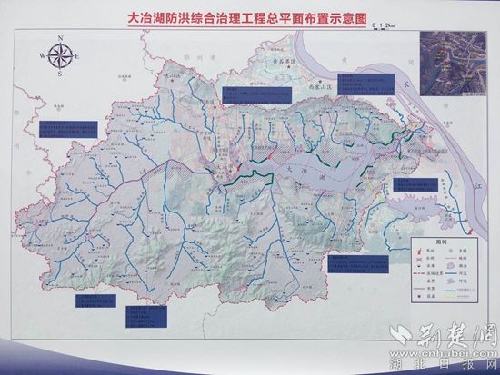 大冶湖防洪綜合治理工程總平面布置示意圖。(記者 呂鑒蕾 攝)