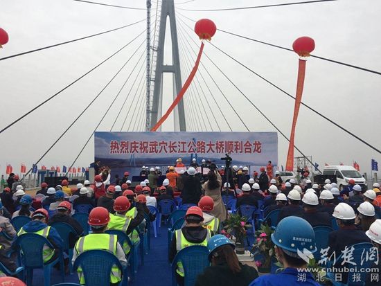 武穴長(zhǎng)江大橋成功合龍儀式現(xiàn)場(chǎng)。呂鑒蕾攝