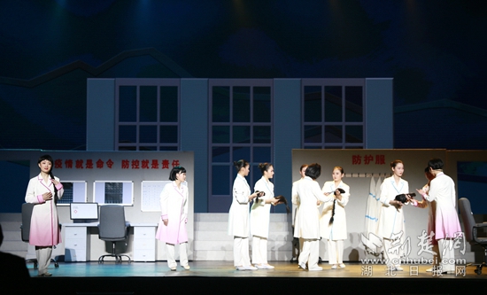 荊楚網(wǎng)客戶端—荊楚網(wǎng)消息(記者呂鑒蕾、通訊員向文容)10月29日晚,原創(chuàng)抗疫題材黃梅戲《疫?春》專場演出在湖北理工學(xué)院公演。