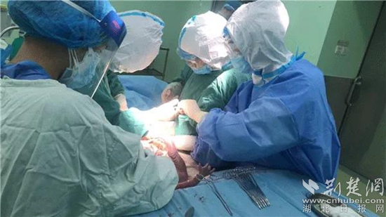 王芬?guī)ьI(lǐng)產(chǎn)科骨干醫(yī)生丁麗君等為確診孕婦實施剖宮產(chǎn)手術(shù)。通訊員供圖