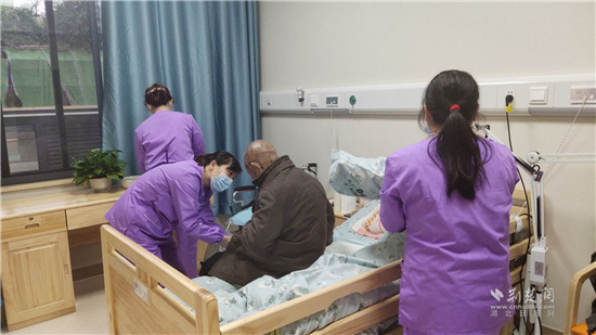 這樣溫馨的情形在養(yǎng)護(hù)院內(nèi)隨處可見(jiàn)。今年85歲的阮爺爺雖患有阿爾茲海默癥,但依舊忘不了夸贊這里的護(hù)理人員,“我對(duì)你們個(gè)個(gè)都好喜歡。”阮爺爺拉著護(hù)理員的手,開(kāi)心地說(shuō)。