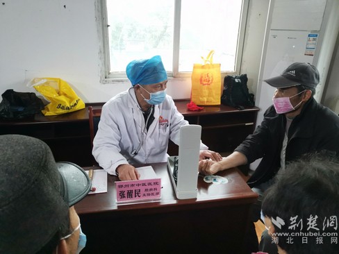 腦病科專(zhuān)家張醒民為村民號(hào)脈。通訊員供圖