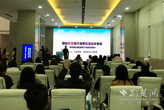 黃石港區(qū)委常委、副區(qū)長徐新勇現(xiàn)場推介。記者 呂鑒蕾 攝