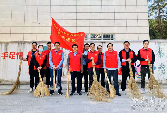 團(tuán)風(fēng)縣委宣傳部在“雙聯(lián)雙進(jìn)”活動中到社區(qū)進(jìn)行衛(wèi)生大掃除志愿服務(wù)。通訊員供圖