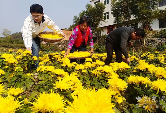 “武漢一商會(huì)訂購(gòu)了300份金絲皇菊,我們正在加班加點(diǎn)趕制訂單。”長(zhǎng)圳村黨支部副書(shū)記、村委會(huì)副主任柯尊清介紹,今年長(zhǎng)圳村80畝金絲皇菊基地新產(chǎn)量達(dá)600斤,去年產(chǎn)量達(dá)1600斤,銷(xiāo)售額達(dá)50余萬(wàn)元,金絲皇菊基地已成為長(zhǎng)圳村的綠色銀行。
