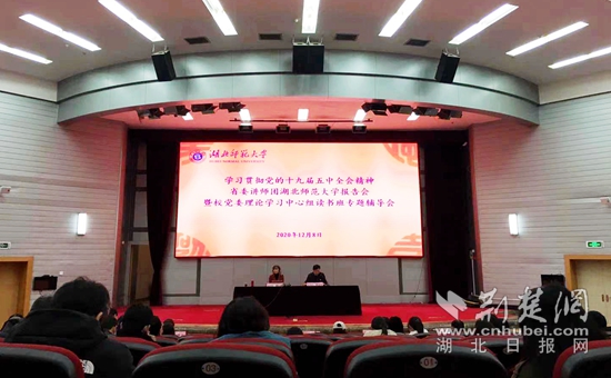 荊楚網(wǎng)客戶端—荊楚網(wǎng)消息(記者呂鑒蕾 通訊員車錄彬 劉廣兵 宋娜)冬日的黃石大地,處處涌動著學(xué)習(xí)宣講黨的十九屆五中全會精神的熱潮。12月8日下午,湖北省委宣講團成員、武漢大學(xué)經(jīng)濟與管理學(xué)院教授、研究生導(dǎo)師杜莉,應(yīng)邀為湖北師范大學(xué)師生作專題報告。