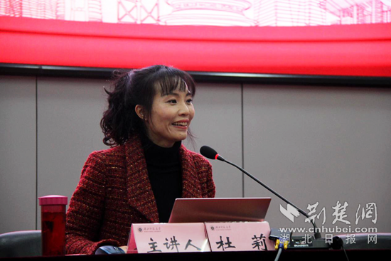 湖北省委宣講團成員、武漢大學(xué)經(jīng)濟與管理學(xué)院教授、研究生導(dǎo)師杜莉作報告。(通訊員供圖)