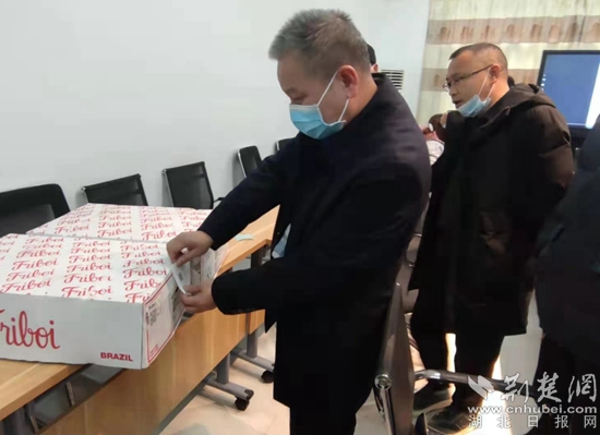 黃石市市場監(jiān)督管理局黨組書記、局長吳金文為產(chǎn)品貼上“鄂冷鏈”溯源碼。劉璐攝
