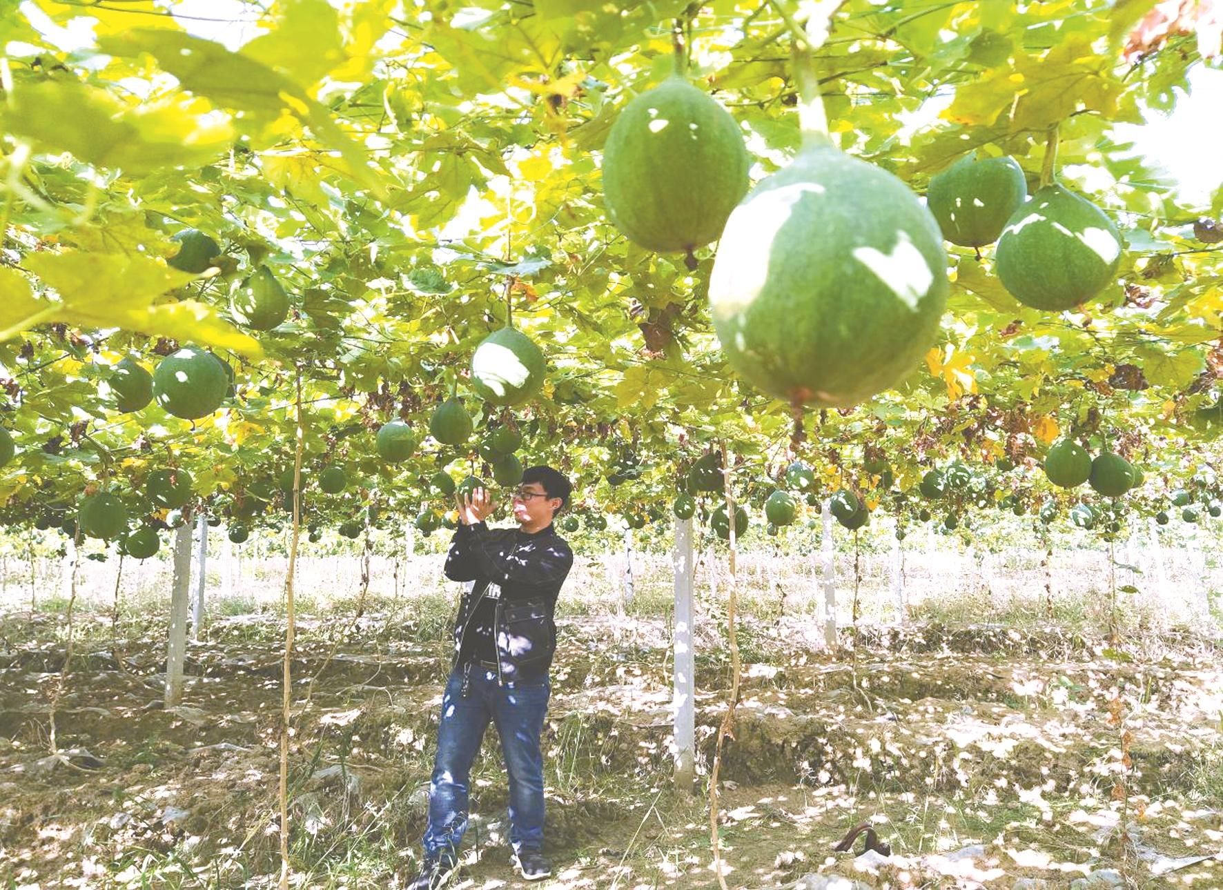 汪崗鎮(zhèn)騎龍地村瓜蔞基地喜獲豐收。(孫懷聰 攝)