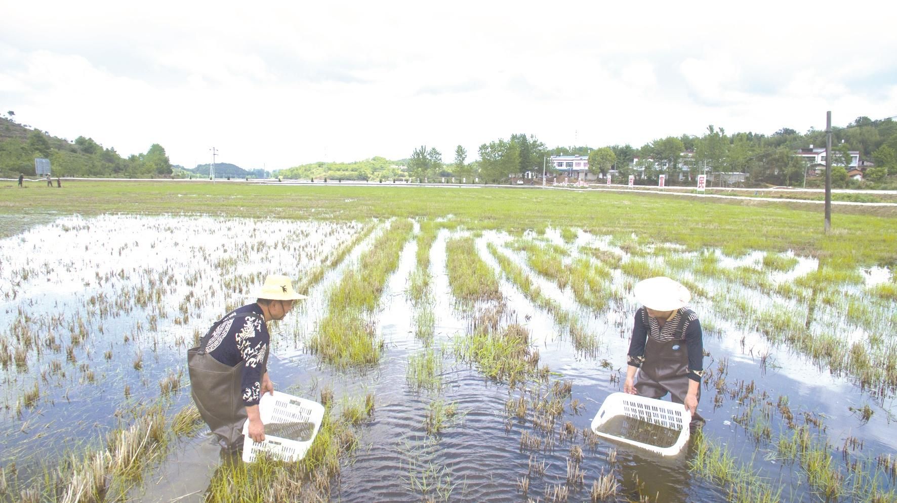 貧困戶在散花鎮(zhèn)石牛山獼猴桃基地務(wù)工。(方俊 攝)