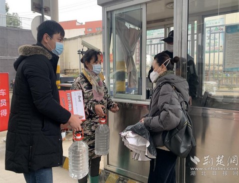 橋虹社區(qū)書記黃永平帶兒子為小區(qū)居民送防疫物資。通訊員供圖