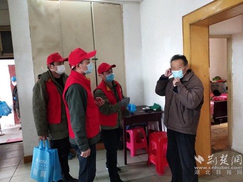 橋虹社區(qū)下沉黨員為空巢老人送防護用品。通訊員供圖