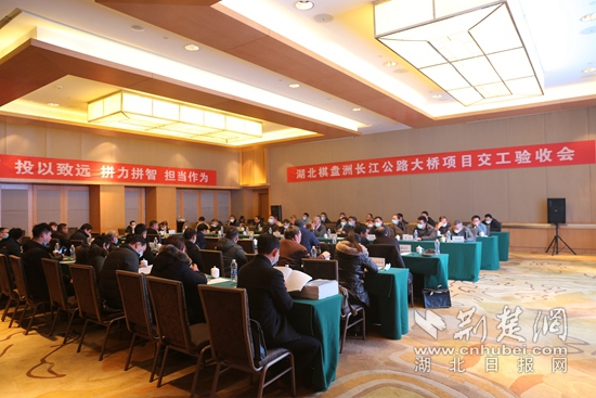 12月18日下午,湖北棋盤洲長江公路大橋項目交工驗收會正式舉行。(記者 呂鑒蕾 攝)