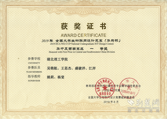 2019年8月,盛駿洋和幾個志趣相投的同學(xué)組成團隊參加了全國大學(xué)生物聯(lián)網(wǎng)設(shè)計競賽(華為杯),一舉拿下了“華中及西南賽區(qū)一等獎”。