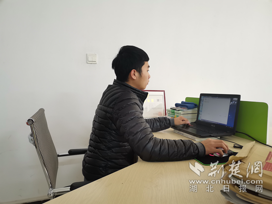 冬日的午后,陽光正好,不少學(xué)生趁著晴好天氣聊天、曬太陽。在湖北理工學(xué)院創(chuàng)業(yè)大樓辦公室,盛駿洋端坐在電腦前,鍵盤噼啪聲不斷。