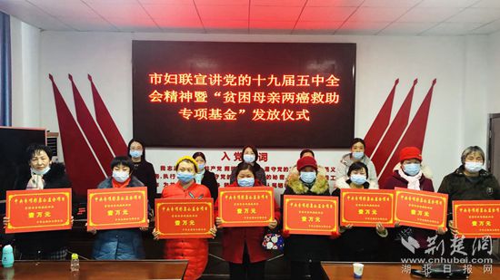 麻城市婦聯(lián)為符合救助條件的“兩癌”母親發(fā)放救助金。通訊員供圖