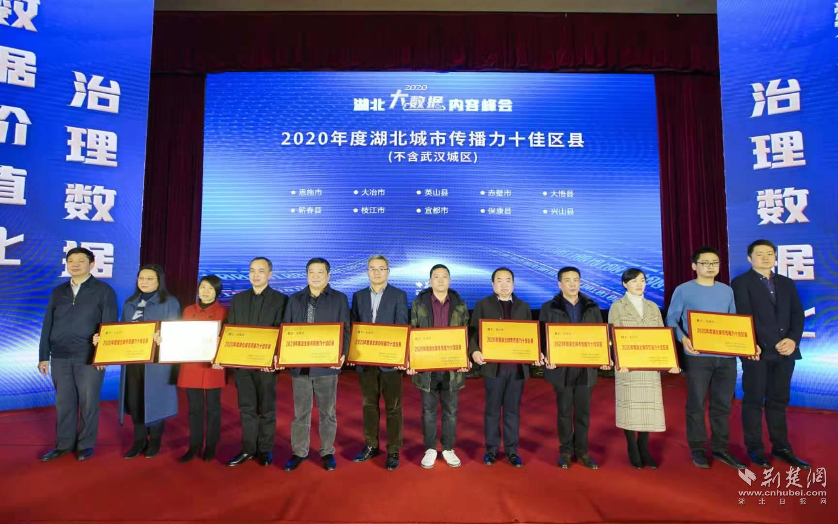 荊楚網(wǎng)客戶端—荊楚網(wǎng)消息(記者 阮瓊)12月28日,“2020湖北首屆大數(shù)據(jù)內(nèi)容峰會(huì)”在武漢舉行,會(huì)上發(fā)布了“2020年度湖北城市傳播力十佳區(qū)縣”名單。大冶市榮獲2020年度湖北城市傳播力十佳區(qū)縣(不含武漢城區(qū))。