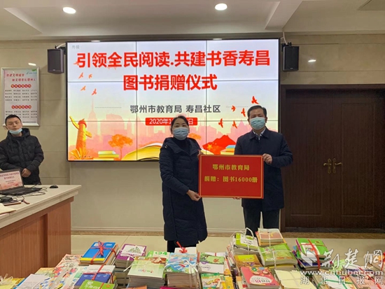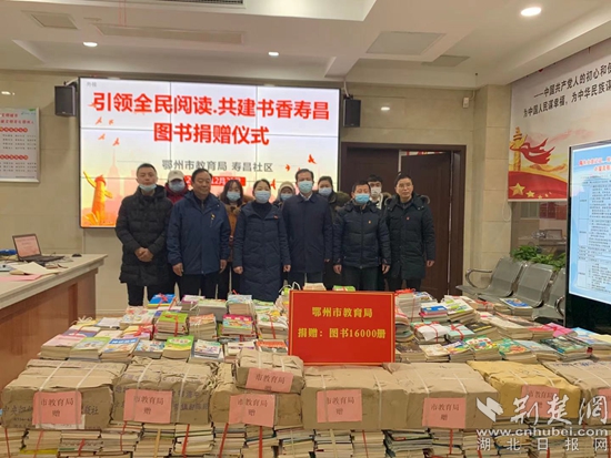 鄂州市教育局將募集的1.6萬冊圖書,捐贈給壽昌社區(qū)。(通訊員供圖)